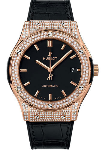 Hublot Classic Fusion King Gold PavŽ Watch - 45 mm - Black Dial - 511.OX.1181.LR.1704